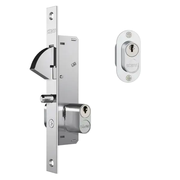 O bico de papagaio Stam (modelos 901 espelho 18mm, 940 distância broca 26,5mm e 1940 reforçado) em zamac/aço ABNT 1010 com espelho inox é a fechadura ideal para portas de correr em perfis metálicos de 25-40mm, garantindo travamento automático com ganchos duplos que impedem arrombamento forçado em portões residenciais/comerciais. Cilindro bipartido gorje com 2 chaves simples oferece 2.000+ combinações seguras, enquanto acabamento grafite/cromado resiste corrosão costeira sem empenar em uso médio-intenso de serralheria. Instalação rápida via furação precisa (máquina 110-165mm altura) atende espessuras de 20-40mm em ferro/alumínio, com contra-testa inclusa para alinhamento perfeito sem folgas.