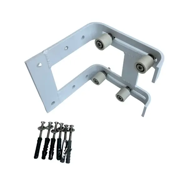 Versão dupla da guia com cantoneira — estrutura em L dupla em aço pintado branco com 4 rolinhos de nylon com rolamento e kit de fixação completo incluso (6 parafusos + 6 buchas). Oferece maior estabilidade e capacidade de carga para portões mais pesados ou mais largos, distribuindo o esforço do deslizamento entre 4 pontos de contato ao invés de 2. O conjunto duplo também reduz a possibilidade de desalinhamento do portão durante o movimento. Indicada para portões deslizantes de médio e grande porte.