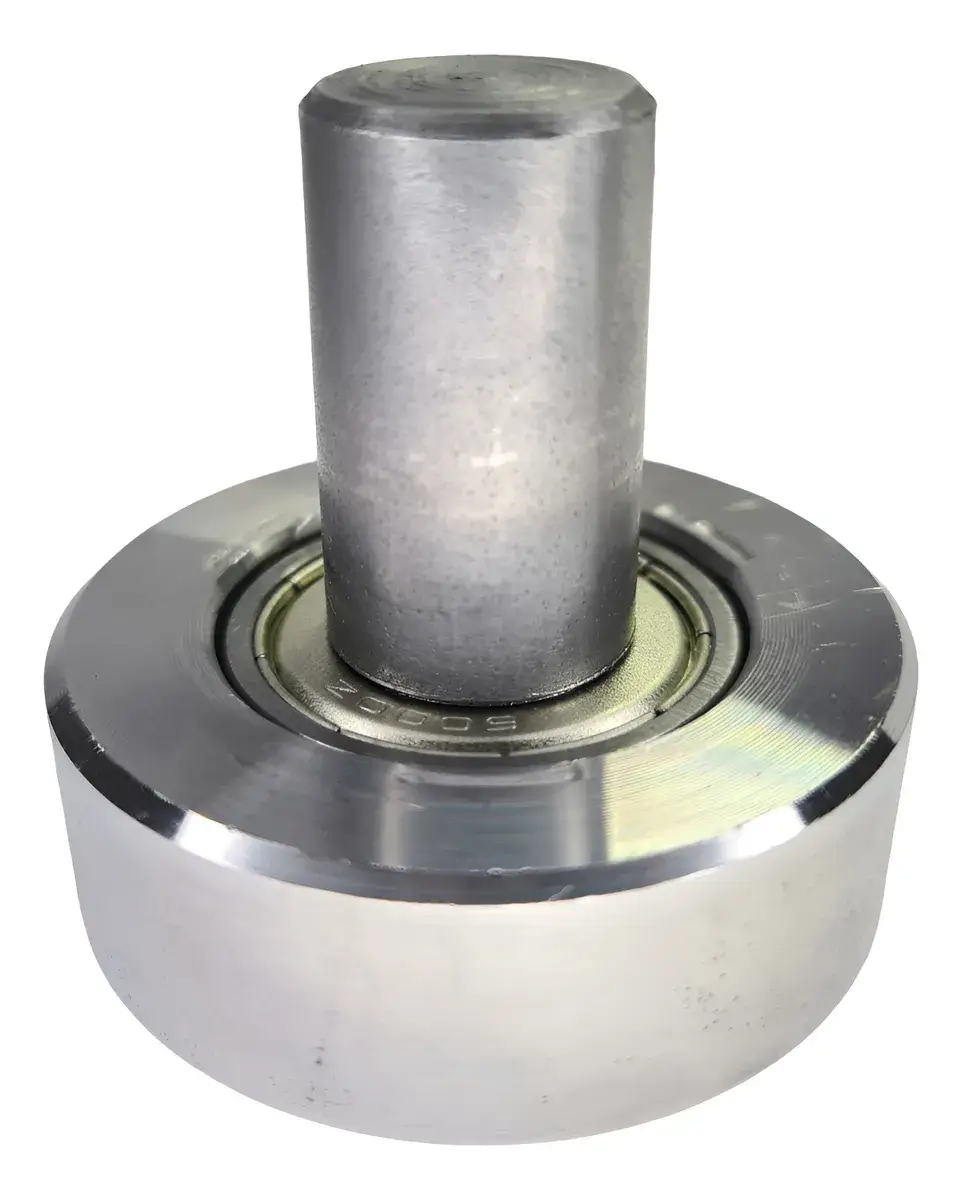 Guia de grande diâmetro (68mm) para portões basculantes de médio e grande porte. Roda em aço usinado com rolamento central de precisão e eixo robusto. Projetada para suportar o peso e a carga lateral dos portões basculantes, garantindo abertura e fechamento suaves mesmo em portões mais pesados. Indicada para garagens residenciais e comerciais com portões de aço.