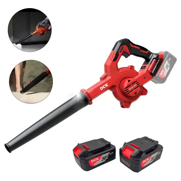 O soprador-aspirador KDQF32-BM6 a bateria 380W com motor brushless é o removedor 2-em-1 portátil para poeira fina, folhas leves e detritos em oficinas serralheria, garagens e quintais pequenos, alternando sopro (13000 RPM, 2,3m³/min) e vácuo com saco coletor sem fios limitantes em áreas de difícil acesso. Bateria 21V 2000mAh recarregável em 1h suporta 25-35min contínuos, com tubo extensível/bocais que limpam bancadas, teclados, interiores automotivos e cantos de solda sem gerar poeira secundária. Design ergonômico 1,2kg em ABS antichoque resiste quedas de 1m em canteiros, com velocidade variável e trava contínua para uso prolongado em limpezas diárias sem fadiga.